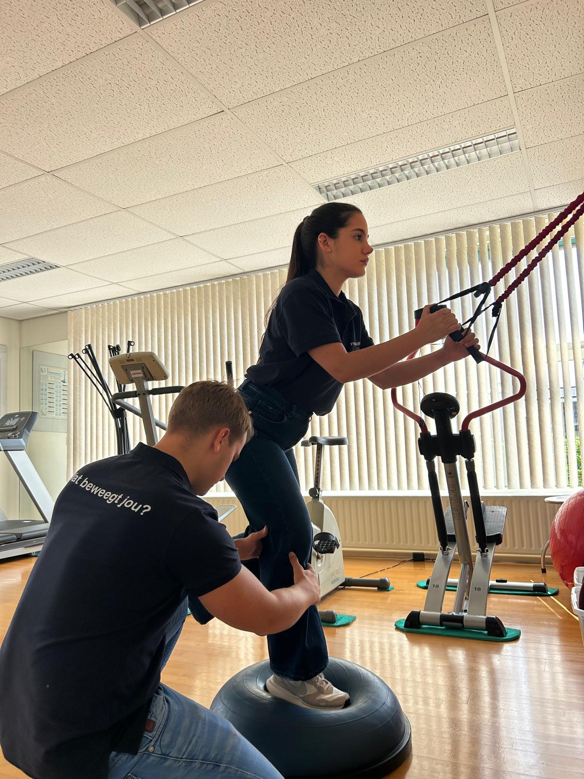Behandeling op de bank en in de oefenzaal, gericht op herstel en zelfstandigheid